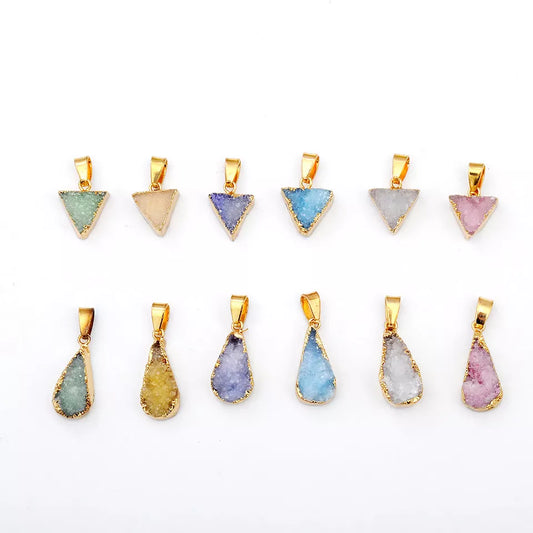 Dainty Minimalist Natural Stone Geometric Triangle Druzy Necklace
