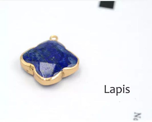 Natural stone lucky clover pendant jade gold plated edge Necklace