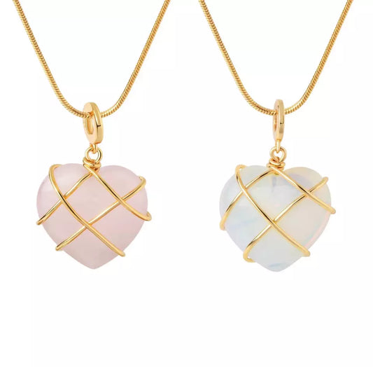 2022 Diy Wire Wrapping Natural Crystal Heart Handcrafted Necklace (Gold Plated)