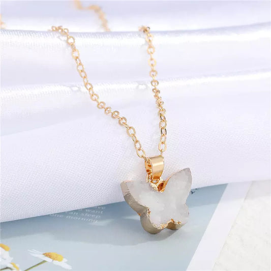 Charm Colorful Natural Stone Butterfly Necklace