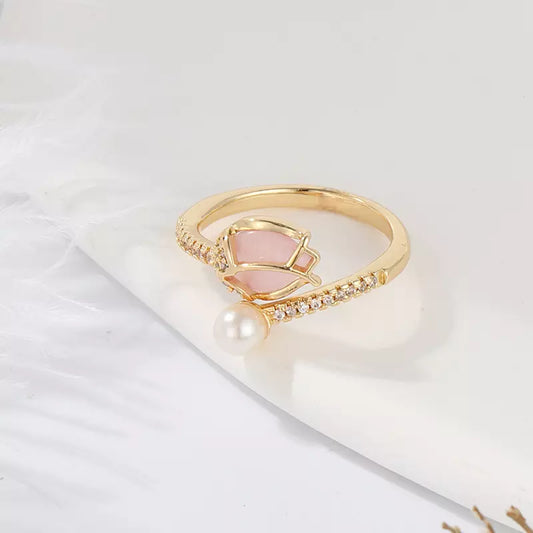 Stainless Steel Vintage Tulip Flower Pearl Ring